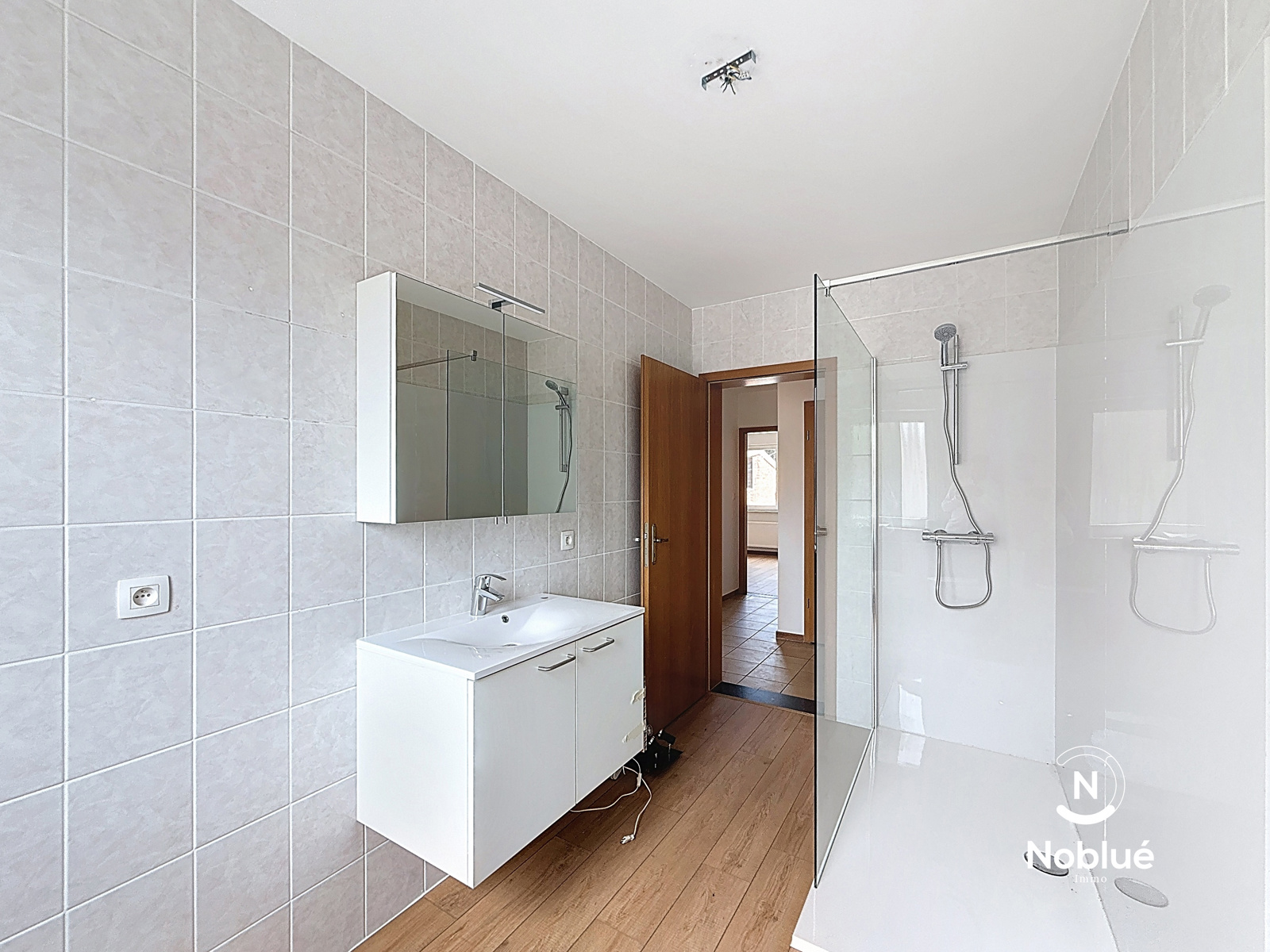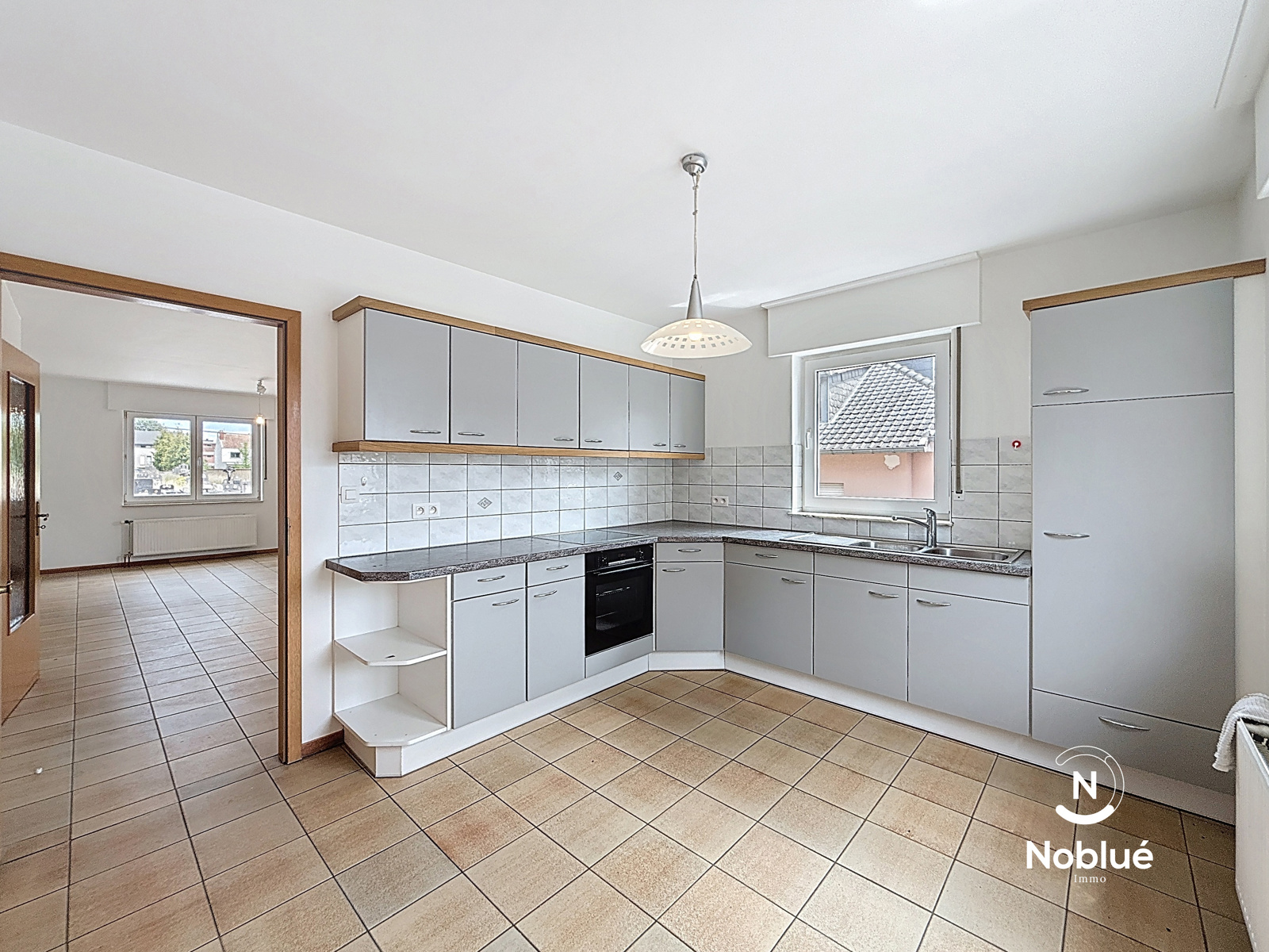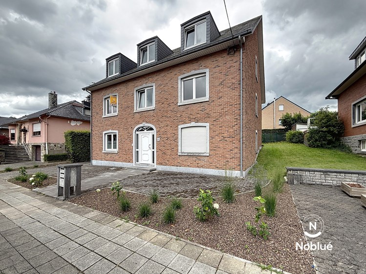 Welkenraedt, à deux pas du centre, dans un environnement calme, au 1er étage d'un petit immeuble de 3 appartements sans ascenseur, grand appartement 2 chambres, entièrement rénové, composé d'un hall d'entrée, 1 wc séparé, un grand et lumineux séjour, une cuisine équipée ( évier, hotte, taque, four, réfrigérateur et lave-vaisselle dans la buanderie), buanderie, un bureau, une salle de douche (lavabo, douche italienne et wc) et un garage.