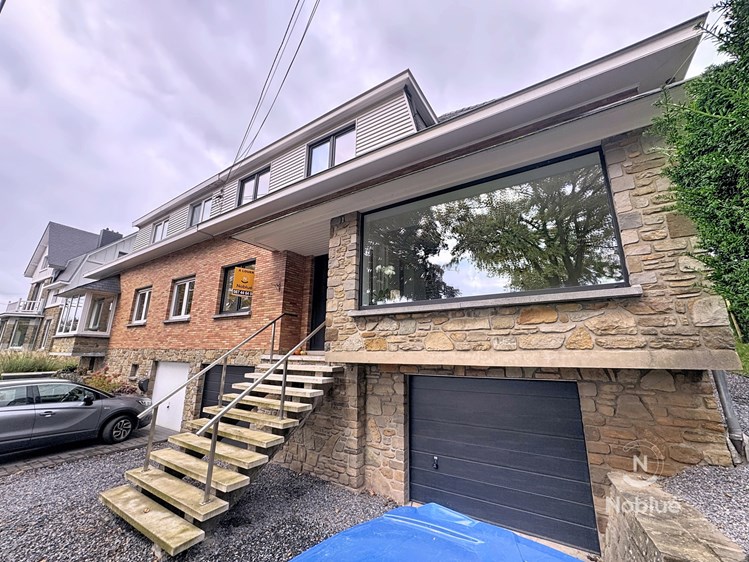 Dans le haut du quartier prisé de Chawieumont, villa semi-jointive parfaitement rénovée comprenant 3 chambres à coucher, 2 salles de bains, dressing, grand séjour avec cuisine équipée (frigo, four, taque vitro, hotte, lave-vaisselle) hall d'entrée avec wc séparé, deux garages, caves, terrasse et jardin. Situation pratique à 3 minutes du centre et ses facilités. PEB réalisé avant travaux de rénovation en 2021 (nouveaux châssis, isolations murs intérieurs, nouveau poêle à pellets , ... )